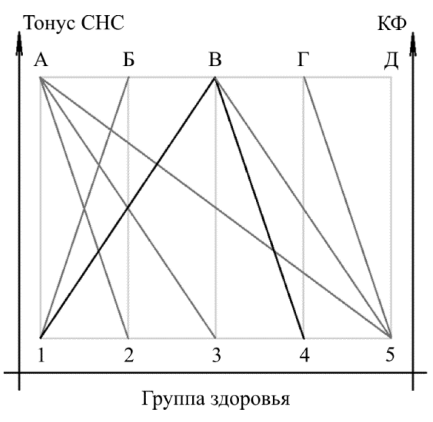 Показано, что оптимальный уровень обеспечения когнитивных функций у практически здоровых лиц молодого возраста достигается относительным равновесием симпатических и парасимпатических влияний, более характерным для лиц, принадлежащих третьей группе здоровья по Г.Л. Апанасенко, соответствующей среднему уровню здоровья. Более низкий уровень здоровья характеризуется дисбалансом вегетативных влияний, который при повышении уровня здоровья и достижении его максимума описывается преимущественными вагальными влияниями и повышением выраженности когнитивных нарушений.
