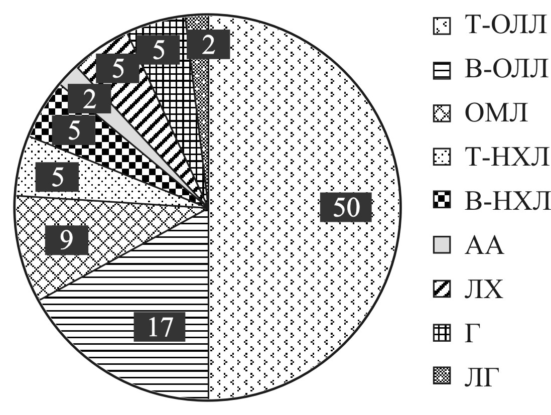 Рис. 1. Структура диагнозов пациентов с онкогематологическими заболеваниями, %