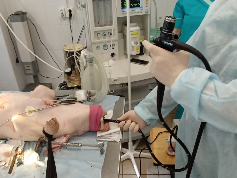 - Создание экспериментальной модели кровотечения из варикозно-расширенных вен пищевода в организме домашней свиньи путём дозированного пережатия печёночно-двенадцатиперстной связки пластиковым хомутом с последующим повреждением вен пищевода биопсийными щипцами при фиброэзофагоскопии технически осуществимо.