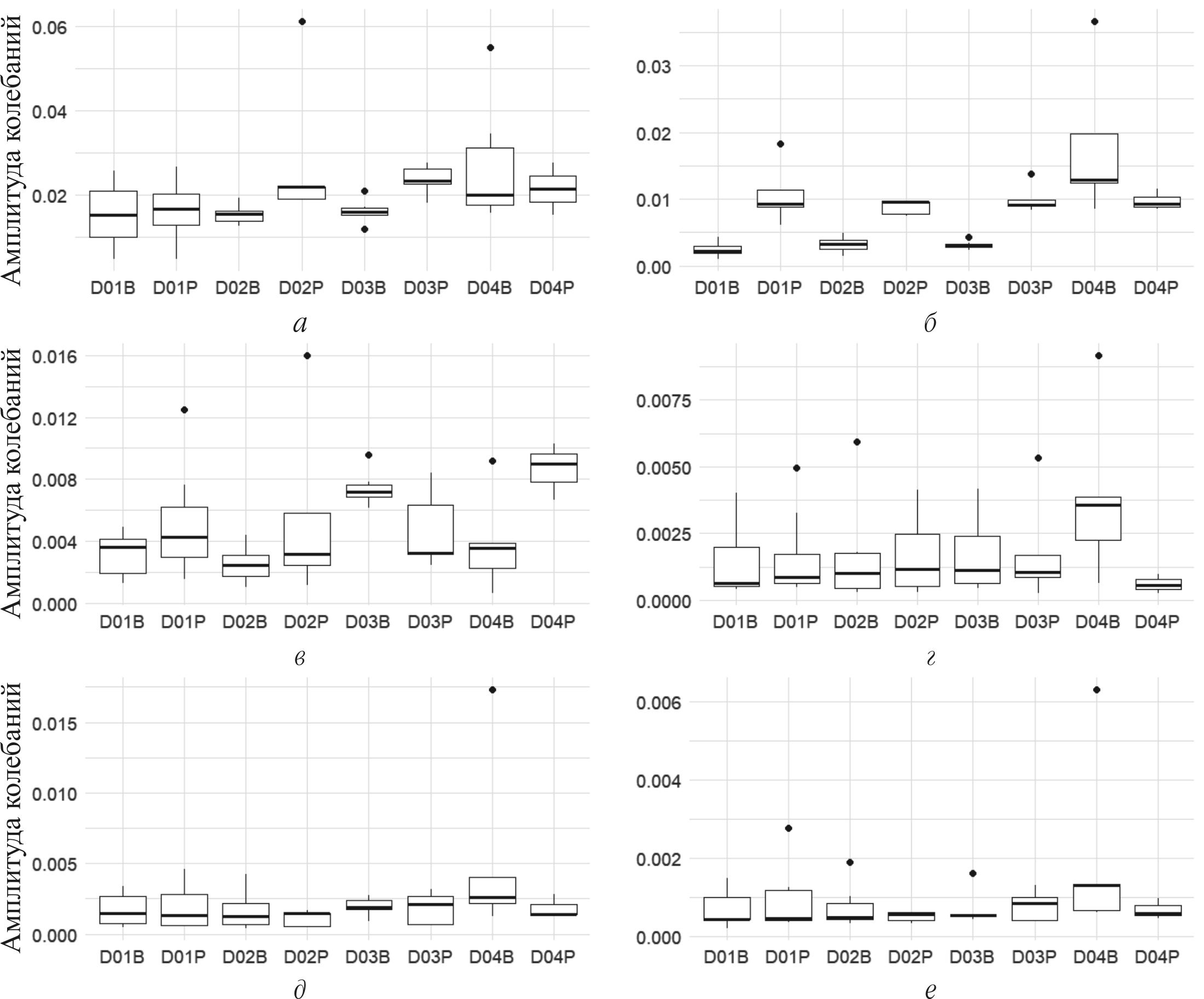 День исследования | Значения медиан амплитуды во время нагрева | р (U-критерий) | Значения медиан амплитуды без нагрева | р (U-критерий) | ||