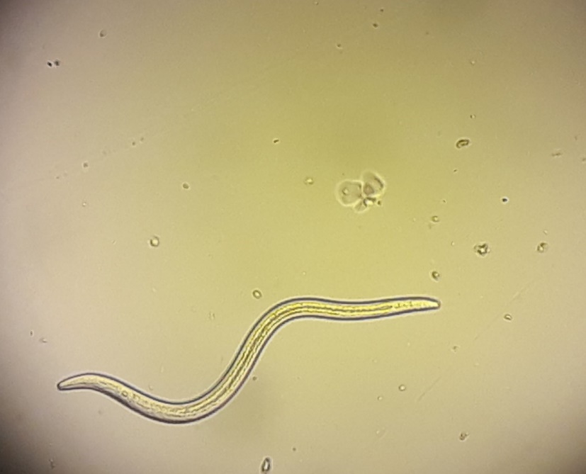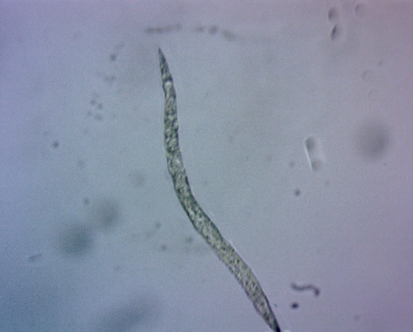 Рис. 1. Личинка Strongyloides stercoralis в почве, ув. ×40, фото Р.С. Аракельян