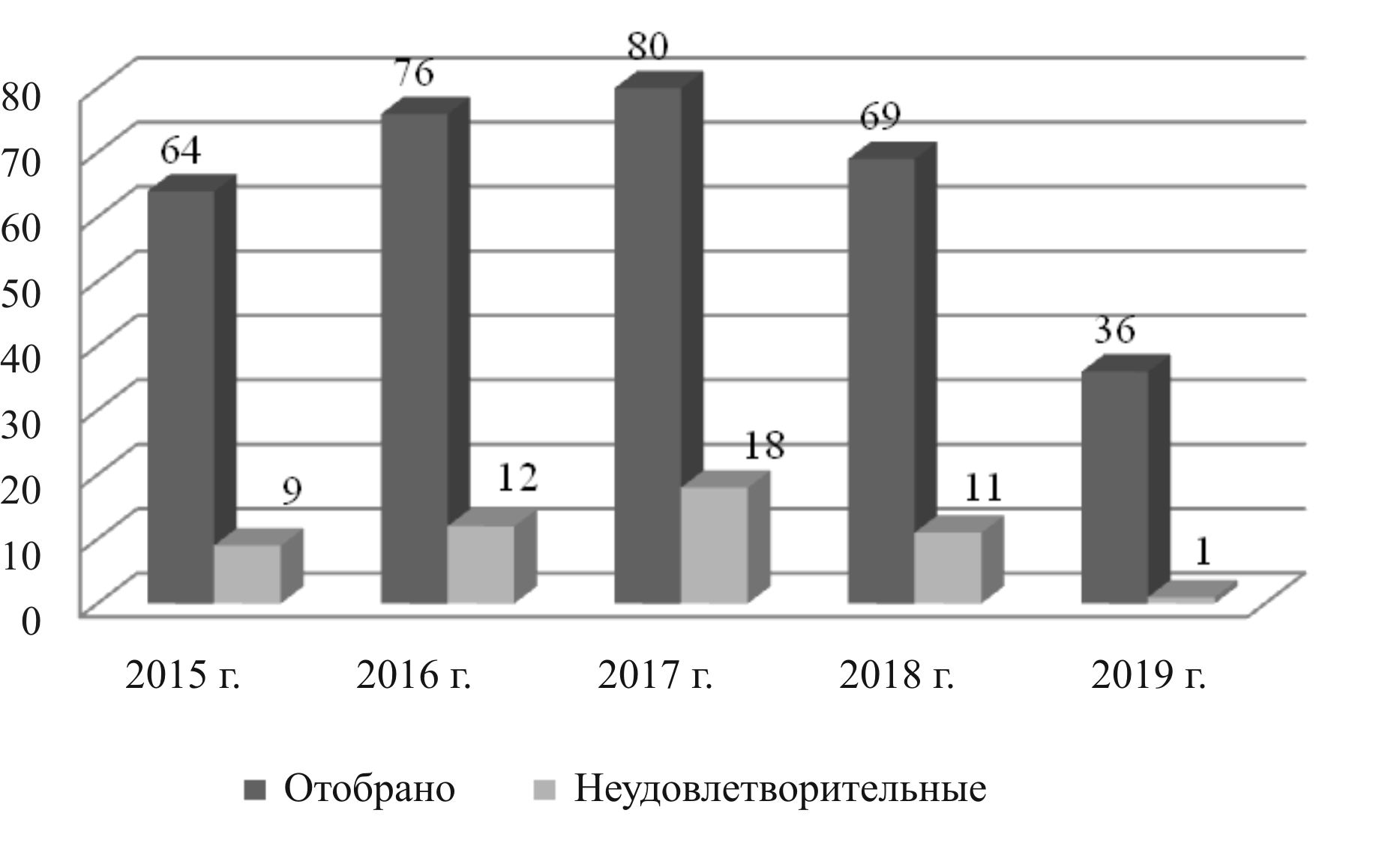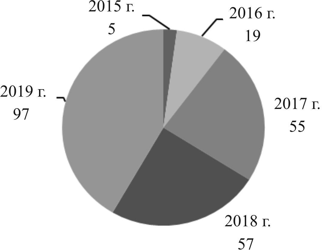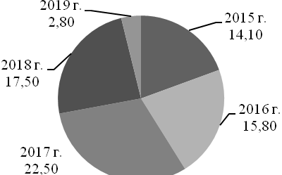 Рис. 8. Число исследованных проб мяса и мясопродуктов за 2015–2019 гг., %