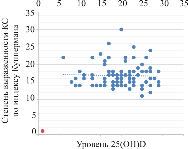 Рис. Корреляция между уровнем 25(OH)D и значениями индекса Куппермана