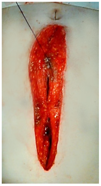 Учитывая то, что в каждом случае экстренной лапаротомии имеется наличие неблагоприятных условий для заживления послеоперационной раны с формированием полноценного рубца срединного апоневроза, очевидным становится целесообразность разработки новых надежных способов лапарорафии.