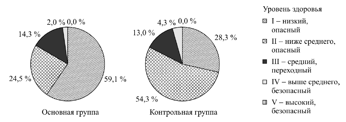 Результаты исследования уровня здоровья по Г.Л. Апанасенко пациентов основной и контрольной групп представлены на рисунке.