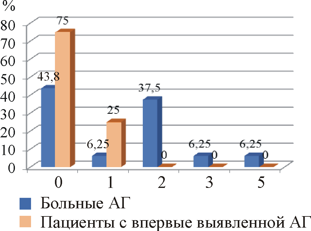 Рис. 5. Частота случаев повышения уровня АД среди пациентов с впервые выявленной АГ