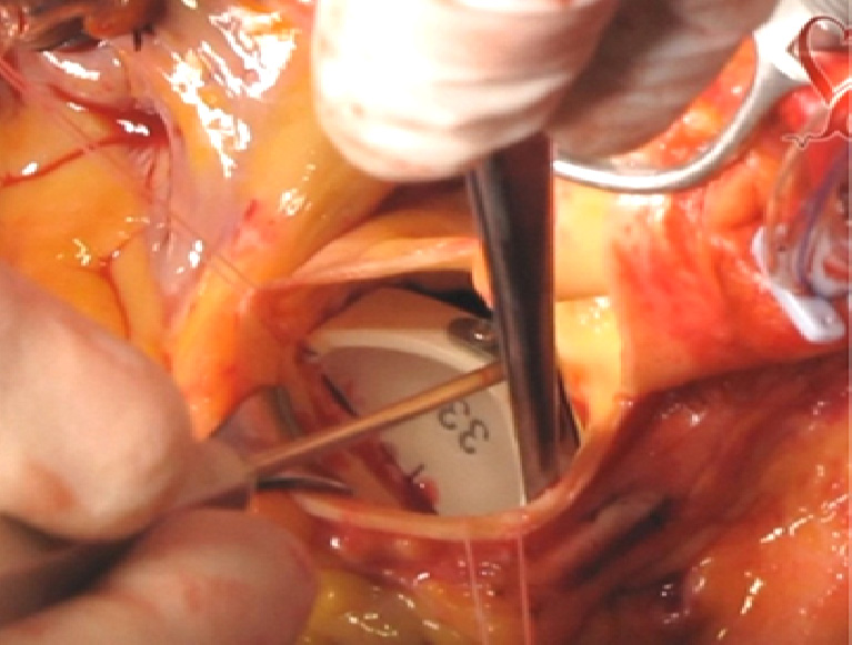 В случаях двустворчатого клапана необходима перестройка неокоммиссур для достижения трех равных неосинусов и хорошей коаптации нового клапана. Дополнительные швы с 6.0 Prolene с использованием заплат также важны для укрепления этой области.
