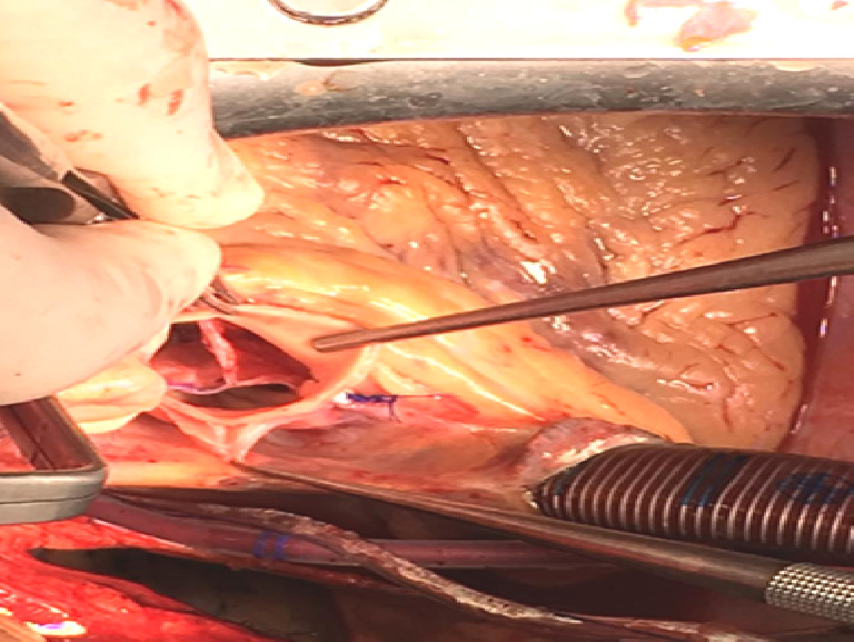 У новых созданных створок были две границы – кольцевая и свободная. Кольцевая граница была пришита к нативному кольцу с использованием непрерывного шва с 4.0 Prolene (Ethicon Inc, Sommerville, NJ USA). На кольце отношение интервала между каждым проколом на створке и кольцом аорты было 3:1. Это отношение было изменено до 1:1 в комиссуральной зоне. Дополнительный 4.0-проленовый шов был наложен на комиссуре для усиления этой области. Коаптация нового клапана затем проверяется визуально и при постановке пристеночного отсоса (wall suction) в левый желудочек, чтобы увидеть, если створки коаптировали (рис. 6).