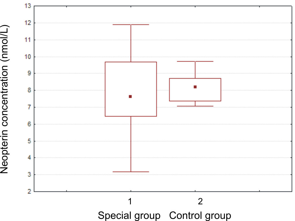 Fig. 1. Neopterin concentration (nmol/L) in the blood serum of the studied groups
