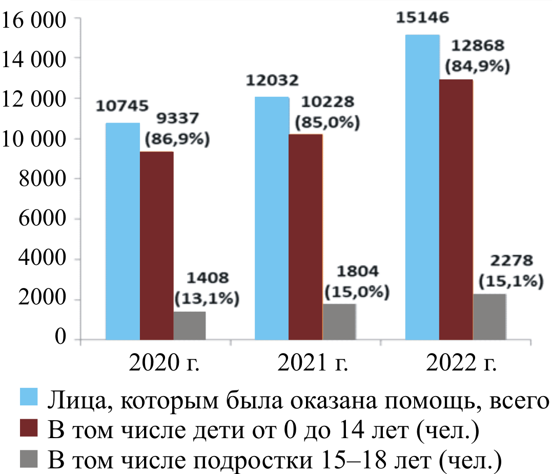An analysis of the age structure of children who received medical treatment in 2020–2022 was carried out (Fig. 2).