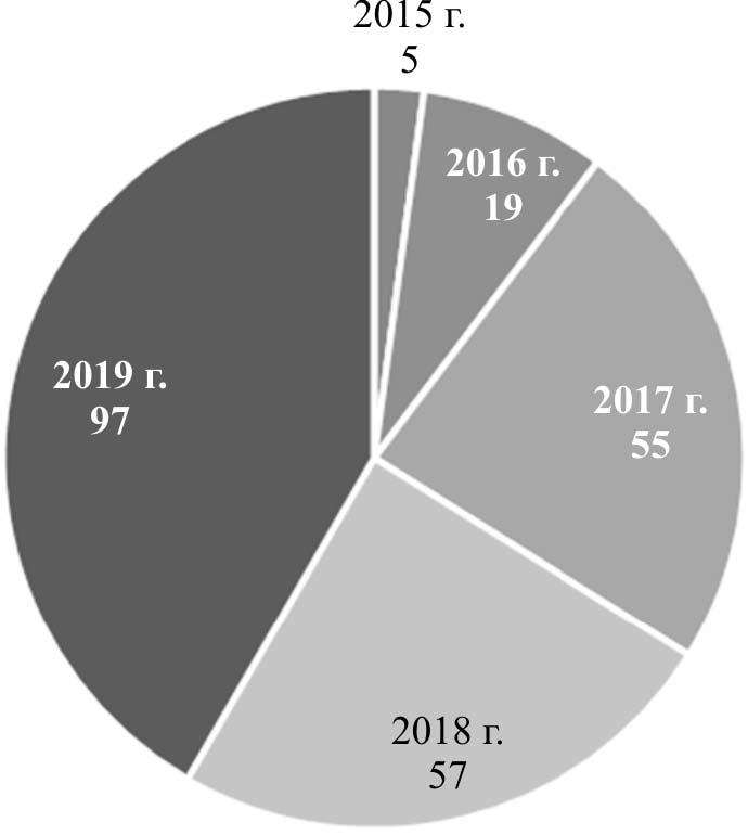 Рис. 1. Число проб рыб и рыбопродуктов, исследованных в 2015–2019 гг.