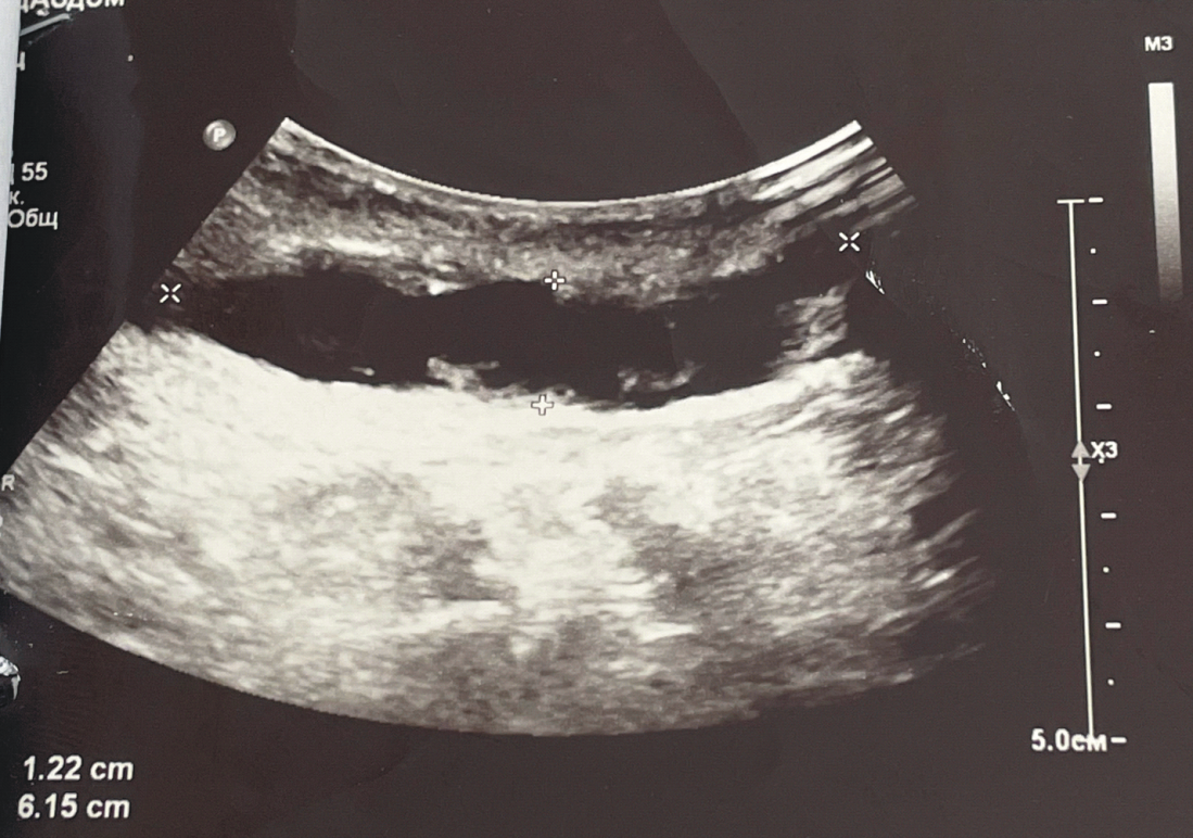4. Fig. 3. Ultrasound of the soft tissues of the neck. Saliva measuring 6112 mm is visualized