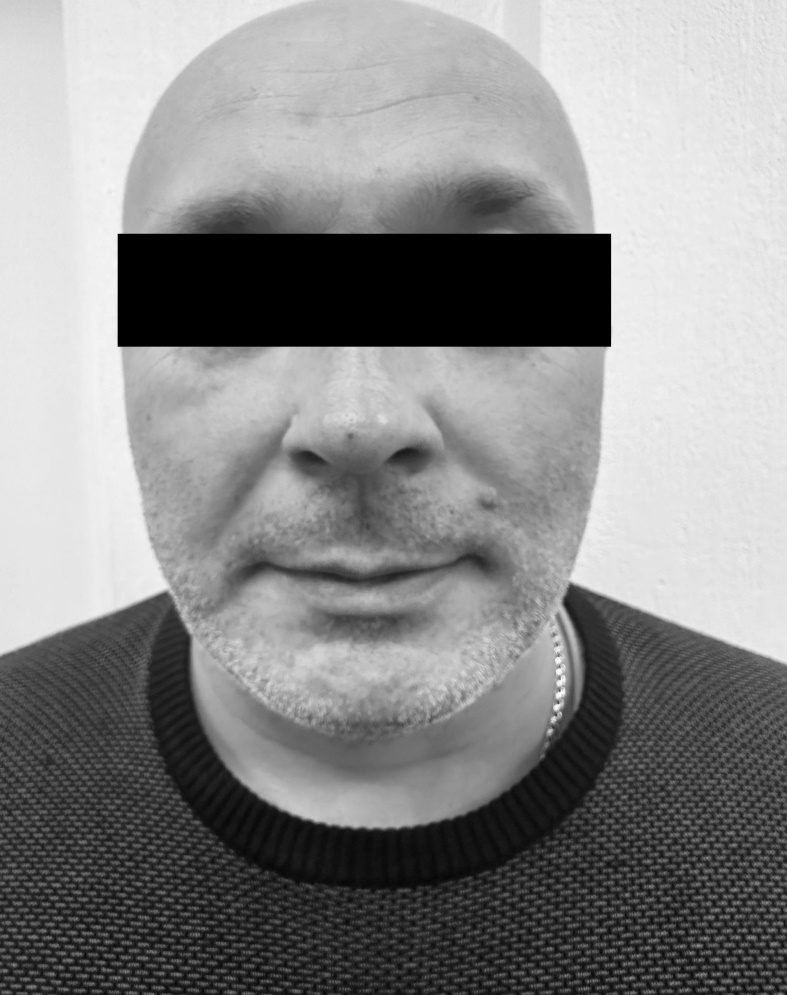 Patient Ch., born in 1981, applied to the Perm Regional Center for AIDS and Infectious Diseases on December 12, 2023, complaining of skin rash on the right wing of his nose, forehead, in the right axillary and right inguinal areas, on the shins, which were not accompanied by subjective sensations.