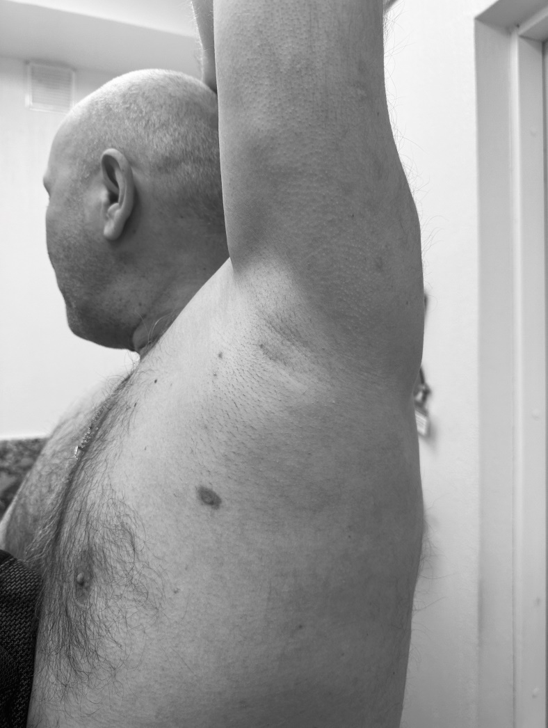 Fig. 2. Purple-brown spots and papules in in the right axillary area