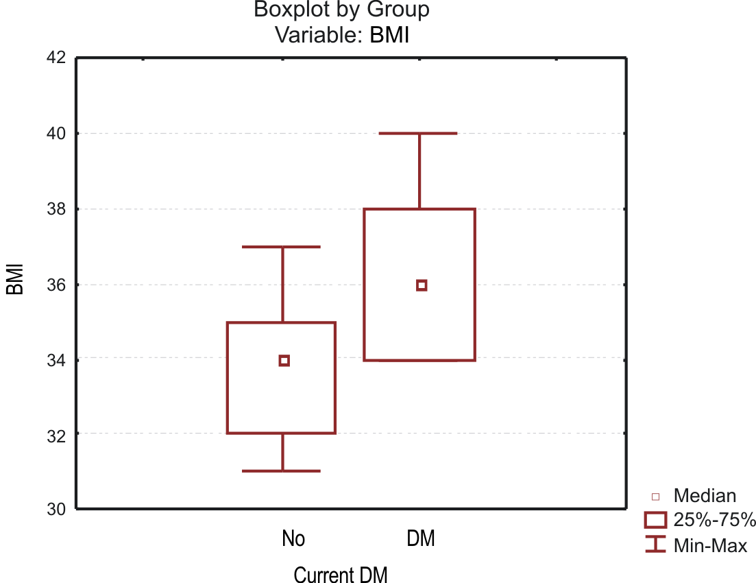 Fig. 3. BMI values during hospitalization in patients with currently established T2DM diagnosis and persistent prediabetes