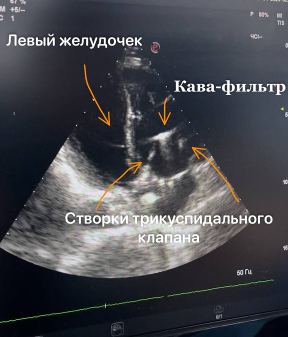Рис. 2. Дислокация кава-фильтра в полость сердца