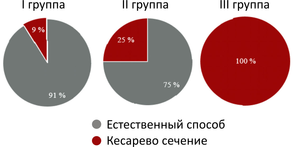 Рис. 1. Способ родоразрешения у пациенток I–III групп