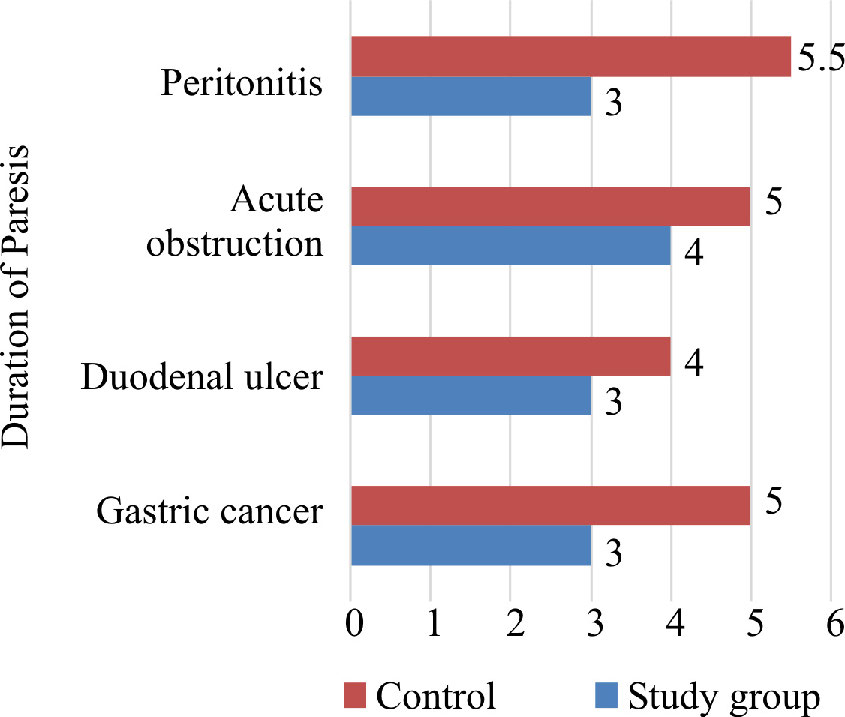 Results. GASTROAXILIUM, specialized food product for tube feeding developed by the specialists of the Research and Production Center for Healthy Nutrition Technologies of Saratov State Medical University named after V.I. Razumovsky, differs from foreign ones in its technological solutions. In the main group a statistically significant reduction in the duration of postoperative intestinal paresis was noted, both in planned and emergency surgeries, in contrast to the comparison group.