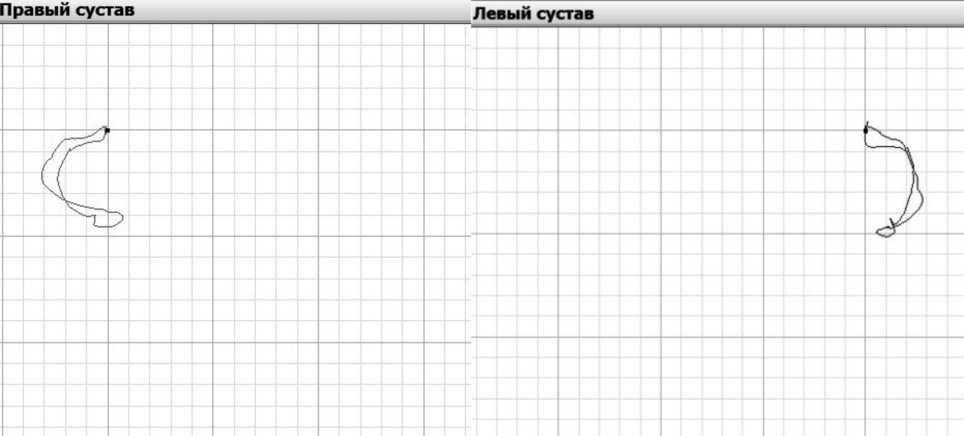 The graphs obtained during axiography were characterized by the formation of asymmetrical tracks, and the results of measuring the biopotentials of the masticatory muscles during an electroneuromyographic study indicated an asymmetry in the tension of the masticatory muscles of the left and right halves of the face.