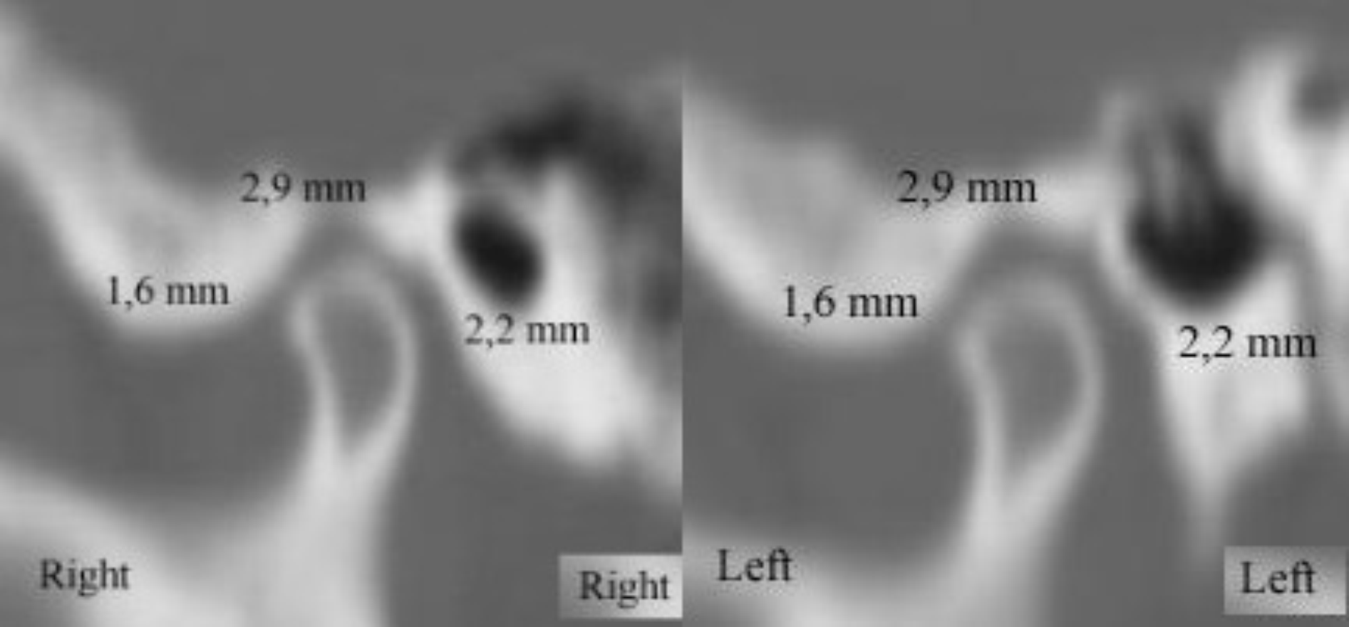 The MSCT visualized the optimal and symmetrical position of the condyles in both TMJs (Fig. 5).