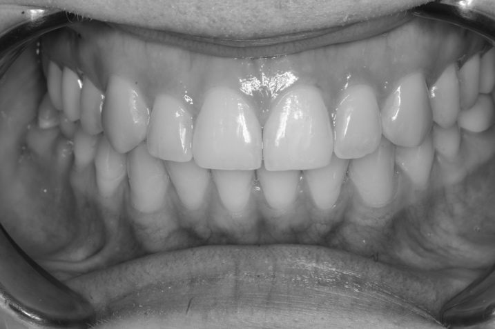 Fig. 8. Photocomposite onlays on the occlusal surfaces of the first molars of the upper jaw