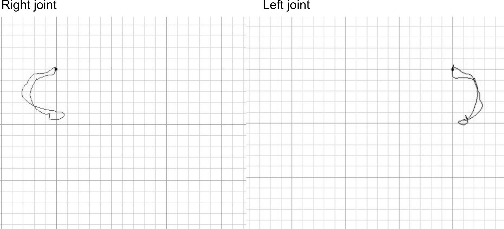 The graphic representation of the movements of the lower jaw, recorded using axiography, indicated a positive change in the trajectories of the movement of the condyles of the TMJ, which were characterized as symmetrical, harmoniously concave tracks (Fig. 4).