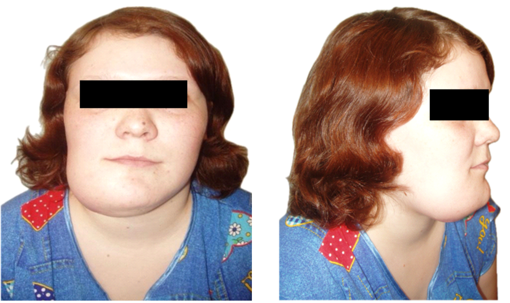 Fig. 1. The patient's appearance before complex treatment: a – full face, b – profile (2006)