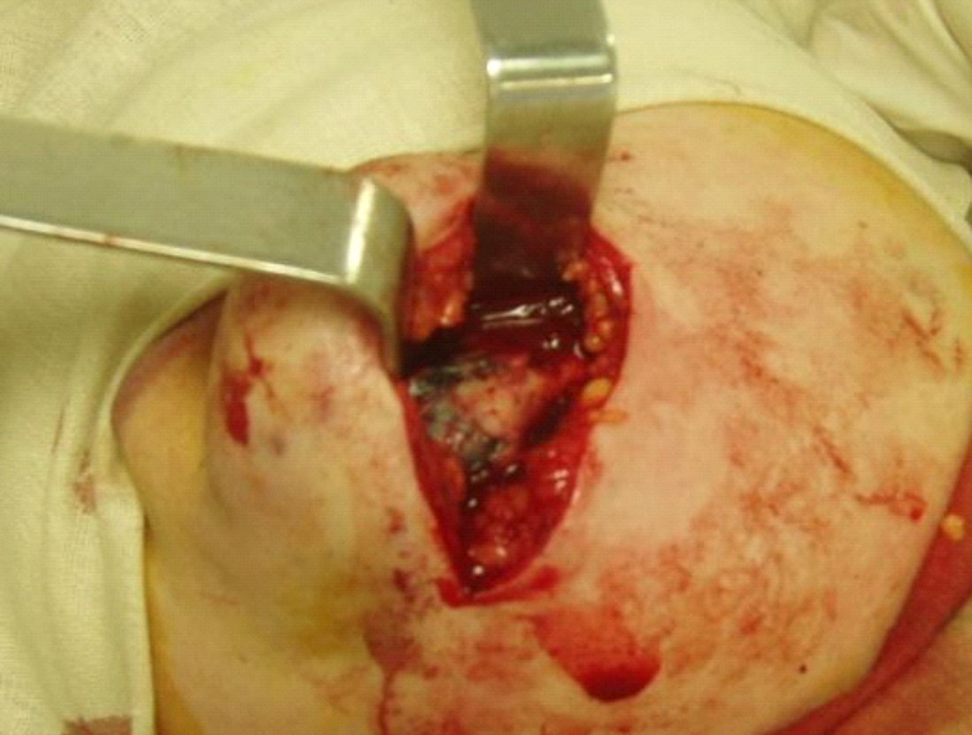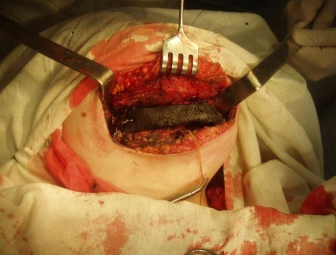 Fig. 6. Osteoclastoma of the lower jaw on the right, relapse (intraoperative), 2011