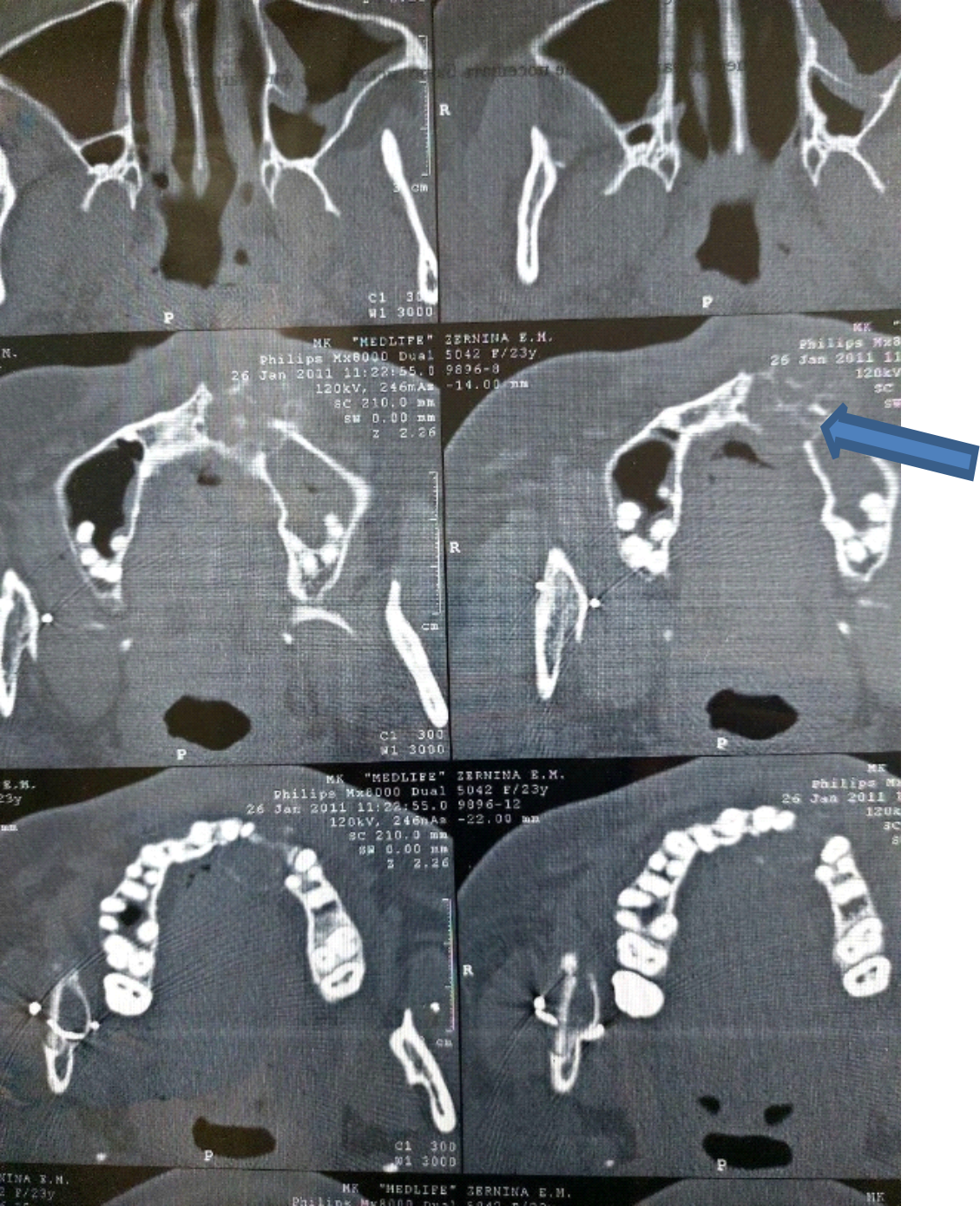 Fig. 4. CBCT: tumor in the upper jaw area, 2011
