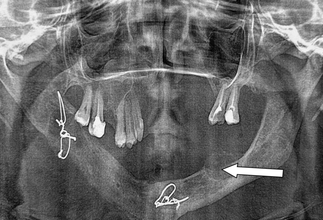 Fig. 8. OPTG: neoplasm in the lower jaw area on the left, 2023