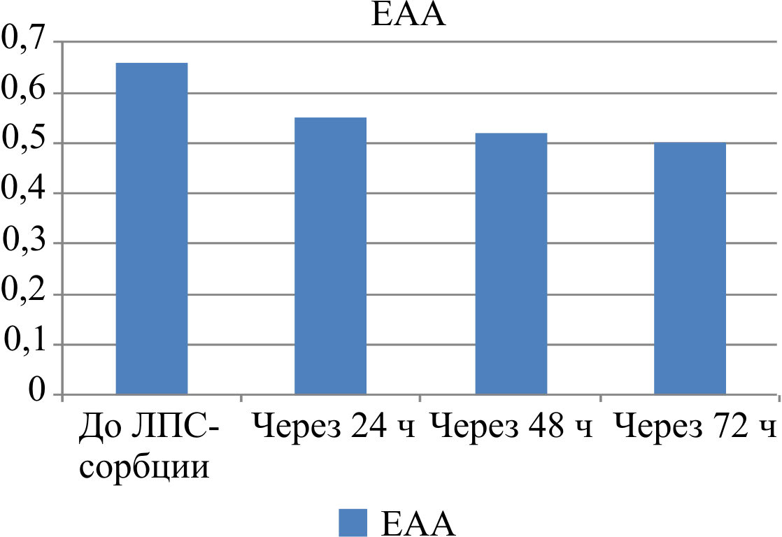 Рис. 3. Снижение активности ЕАА в результате ЛПС-сорбции картриджем «Эфферон ЛПС»