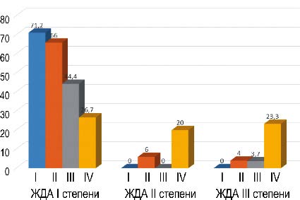 Рис. 2. Железодефицитные состояния по степени тяжести в группах сравнения, %