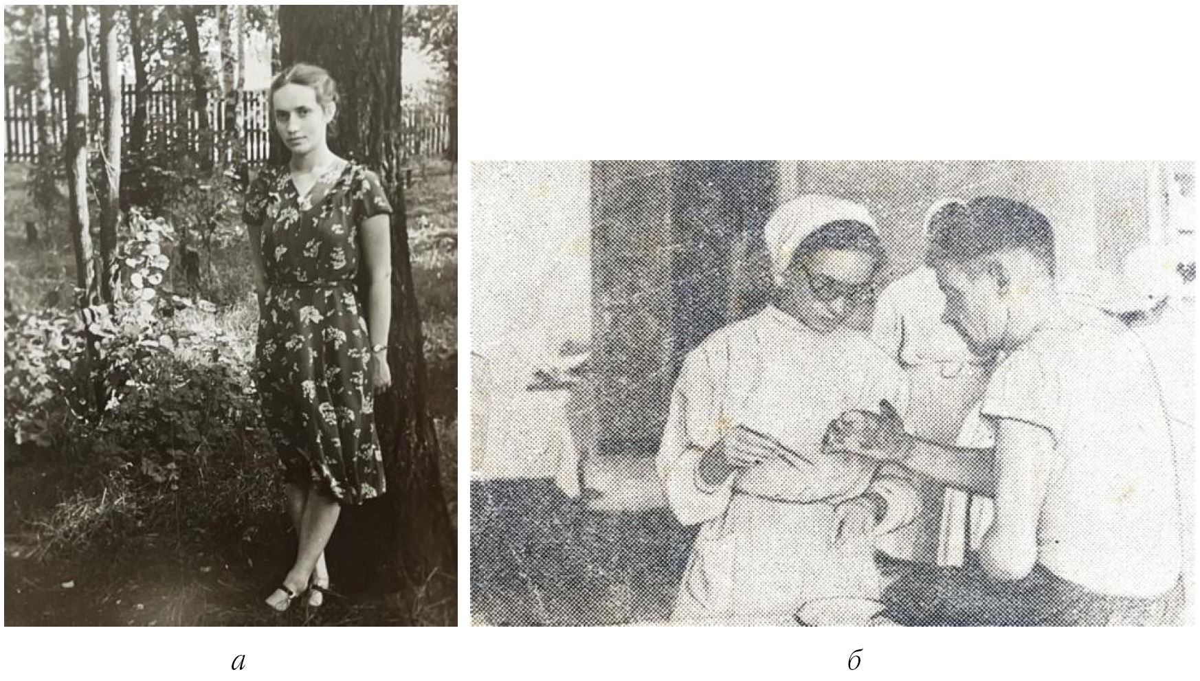Рис. 1. Фаина Ильинична: а – в годы учебы в Лысьвенском медицинском училище; б – студентка медицинского училища за работой на практике в перевязочной