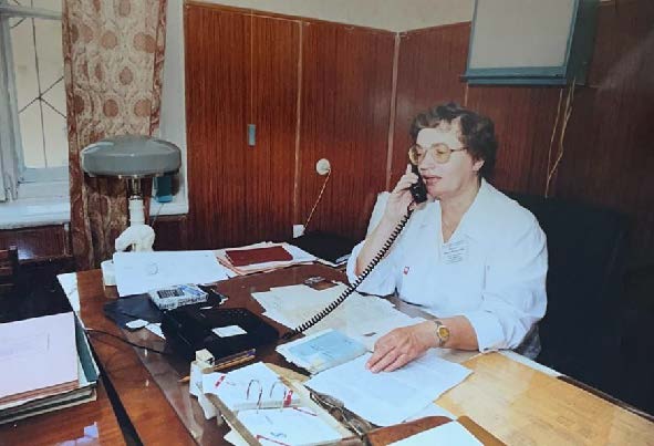 Рис. 3. Фаина Ильинична Кислых в своем кабинете, кафедра хирургической стоматологии и челюстно-лицевой хирургии, 1996 г.