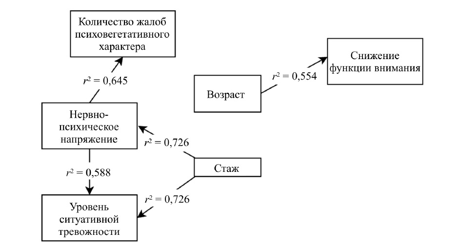 В группе работников старше 45 лет качественно меняются взаимоотношения показателей психовегетативного состояния с возрастом и стажем на фоне более выраженных функциональных изменений ССС и лабораторных показателей крови. Это позволяет выделить особый «психосоматически реализуемый адаптационный фенотип».